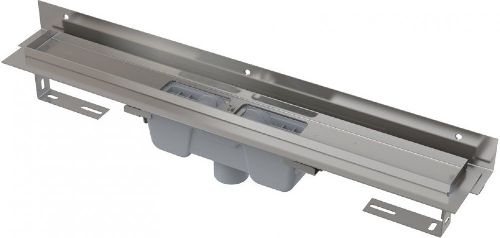 • Pro bezbariérový přístup• Pro dřevostavby a montované stavby• Pro odvodnění sprch v úrovni podlahy• Pro osazení přímo ke stěně• Pro perforované nerez rošty• Pro použití uvnitř budovVýhody:• Dokonale čistitelný sifon• Nízká stavební výška• Komplexní nabídka technického a designového řešení• Nadstandardní příslušenství• 25 let zárukaNormy• ČSN EN 1253Technické parametry• Celková stavební výška 100 – 158 mm• Minimální tloušťka betonu 85 mm• Odolnost zápachové uzávěry proti tlaku 590 Pa• Odpadní potrubí průměr 50 mm• Posun límce 10 – 15 mm• Průtok 60 – 68,8 l/min• Třída zatížení K3 300 kg• Zápachová uzávěra 50 mmVlastnosti• Kvalitnější a bezpečnější přechod izolace z podlahy na stěnu• Límec a vpust jsou chráněny fólií, vanička polystyrenovou vložkou• Materiál sifonu: polypropylen• Materiál žlabu: nerezová ocel AISI 304, DIN 1.4301, ČSN 17240• Mechanicky čistitelný sifon až po odpadní trubku• Možnost dokoupení kombinované zápachové uzávěry• Nastavitelný vertikální izolační límec pro obklady o síle 6-12 mm• Podlahový žlab z nerezové oceli (zušlechtění materiálu mořením a pasivací, elektrochemické přeleštění)• Samolepicí páska pro kvalitní hydroizolaci• Sifon spojen se žlabem - 100% vodotěsnost• Stavební výška od 85 mm• Usnadňuje spádování podlahy• Výškově stavitelný• Vysoký průtok je umožněn díky dvěma komorám sifonu• Záruka 25 let