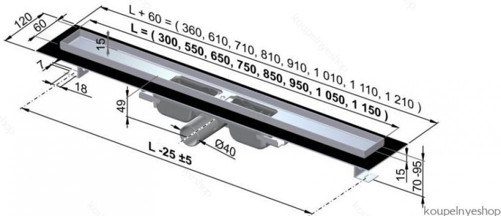 Podlahový žlab neobsahuje rošt. Nutné objednat zvlášť.