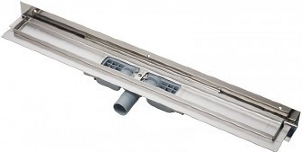 ALCAPLAST Flexible Low Podlahový žlab s okrajem pro perforovaný rošt APZ104-1150 - s nastavitelným límcem ke stěně Délka žlabu: 1150 mm Minimální tloušťka betonu: 55 mm Celková stavební výška: 70-96 mm Šířka koryta žlabu: 60 mm Maximální tloušťka dlažby: 12 mm Průtok žlabu (ČSN EN 1253): 35 l/min Odpadní potrubí: průměr 40 Posun límce: 10–15 mm Třída zatížení (ČSN EN 1253): K3 Materiál – tělo žlab...
