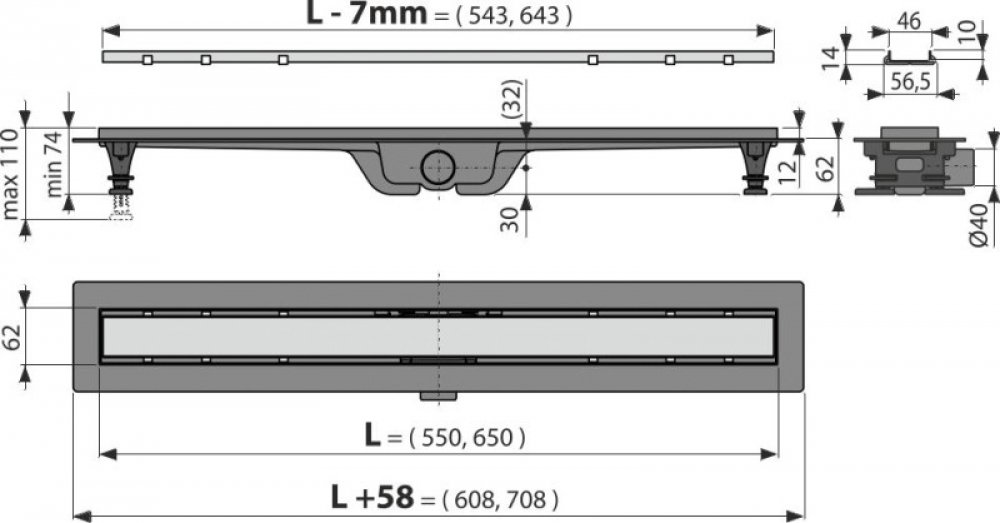 Alcadrain plastové stříbrné 650 mm 1200 mm
