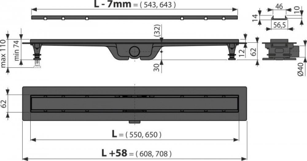Alcadrain APZ19BLACK-650