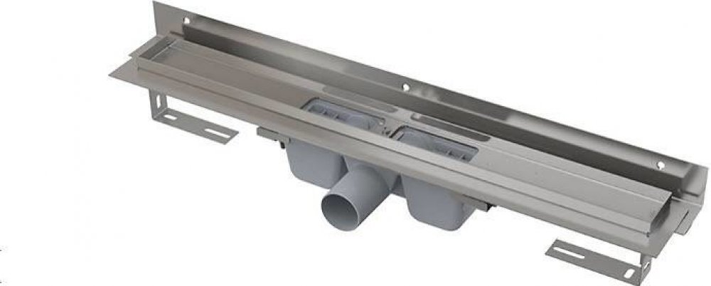 ALCAPLAST podlahový žlab s okrajem pro perforovaný rošt, svislý odtok APZ1101-1150 mm Délka: 1150 mm Minimální tloušťka betonu : 55 mm Celková stavební výška : 70-96 mm Šířka koryta žlabu: 60 mm Průtok žlabu (ČSN EN 1253): 44 l/min Odpadní potrubí: průměr 40 Třída zatížení (ČSN EN 1253): K3 Materiál – tělo žlabu (ČSN 17240): Nerezová ocel DIN 1.4301 Materiál – zápachová uzávěra: PP Tento žlab je určen pro vkládání perforovaných roštů. Nerezový okraj tvoří pohledový přechod mezi dlažbou a vloženým roštem. Voda vtéká do žlabu přes okraje a otvory v roštu. Umísťuje se do prostoru nebo do blízkosti stěny. - Dokonale čistitelný sifon až po odpadní trubku - Nerezová ocel DIN 1.4301 (zušlechtění materiálu – moření a pasivace, elektrochemické přeleštění) - Sifon napevno spojen se žlabem – 100% vodotěsnost - Nastavitelné nohy - Svislý odtok – vhodné pro dřevostavby - Součástí balení – hydroizolační páska, kotvící set, ochranná fólie límce a vtoku, ochranná vložka vaničky žlabu VÝHODY ŽLABŮ ALCA - vysoký průtok vody - dokonale čistitelný sifon - komplexní nabídka technického a designového řešení - nadstandardní příslušenství - 25 let záruka