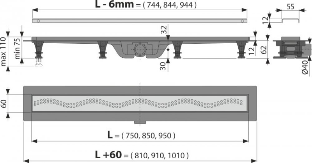 Průměr odpadního potrubí 40 mm.
