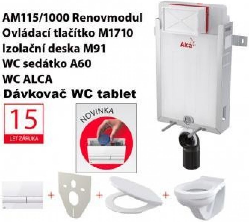 Předstěnový instalační systém AM115/1000 Renovmodul od firmy Alcaplast. NOVINKOU je sada pro vhazování tablet, která je součástí dodávky.