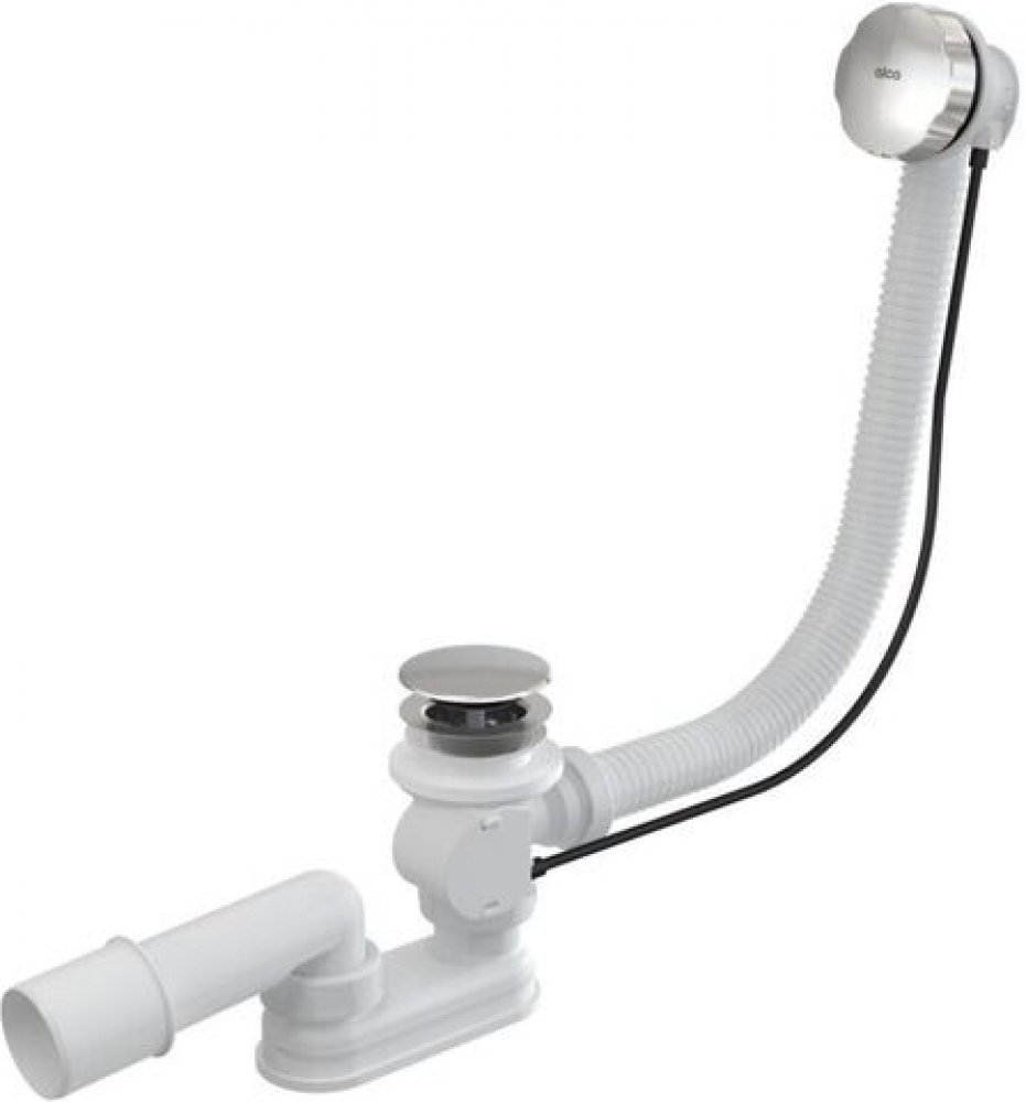 Alcadrain sifon vanový automat komplet kov, pro vany standardních rozměrů, s otvorem Ø 5,2 cm, materiál polypropylen, délka 57 cm, krytky chrom, zavírání pomocí bovdenového ovládání, zápachová uzávěrka 5 cm, odolnost zápachové uzávěrky 588 Pa, průtok 51,6 l/min, průtok přepad 42 l/min, napojení na odpad Ø 5 cm.