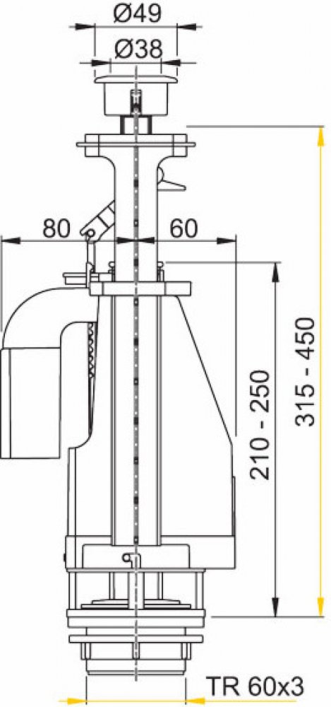 Alca plast - Ventil vypouštěcí A08 s DUAL splachováním pro keramické nádrže