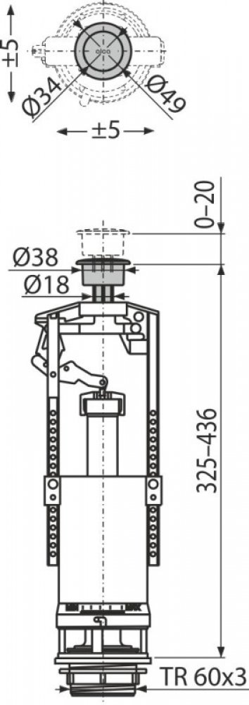 ALCAPLAST Vypouštěcí ventil se STOP tlačítkem zvýšený A05