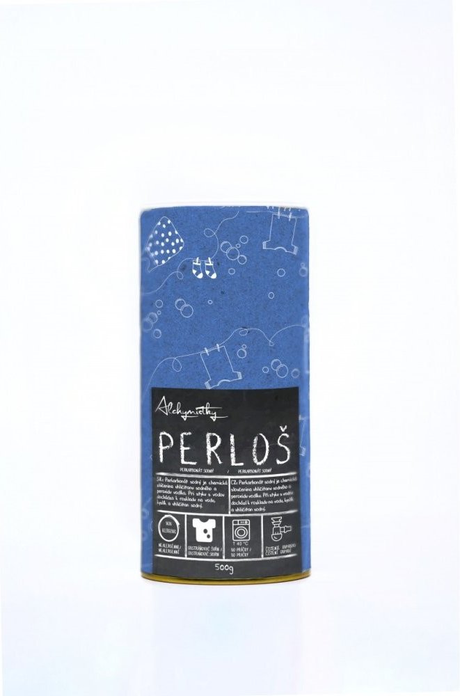 Perloš od Alchymistek je na bázi perkarbonátu sodného. multifukční ekologický prostředek čištění, dezinfekce, odstranění skvrn a rozjasnění prádla Velikost balení: 500 g Co je perkarbonát sodný? Perkarbonát sodný, často nazývaný kyslíkové bělidlo, je skvělou volbou pro ty, kdo chtějí účinný, ale ekologický čistič. Při kontaktu s vodou se rozkládá na sodu a peroxid vodíku, což znamená, že dezinfikuje, odstraňuje skvrny a přitom nezatěžuje přírodu. Jak používat Perloš V pračce k dezinfekci a odstranění skvrn: Do praní doporučujeme přidat 1PL (15g) Perloše jen k světlému prádlu a v případě tvrdé vody 1KL (5g) Perloše i k barevnému a tmavému prádlu. Odstranění skvrn: Perloš nasypeme přímo na mokré skvrny a necháme působit několik hodin nebo přes noc. Pak vypereme. K dezinfekci povrchů: Rozpustíme 1-2 PL Perloše v 1 l horké vody. Čištění sifonů a dezinfekce toalet: Rozpustíme 1-2 PL Perloše v 1 l horké vody a nalijeme do toalety nebo do sifonu a necháme hodinu až dvě působit. Složení 100% perkarbonát sodný
