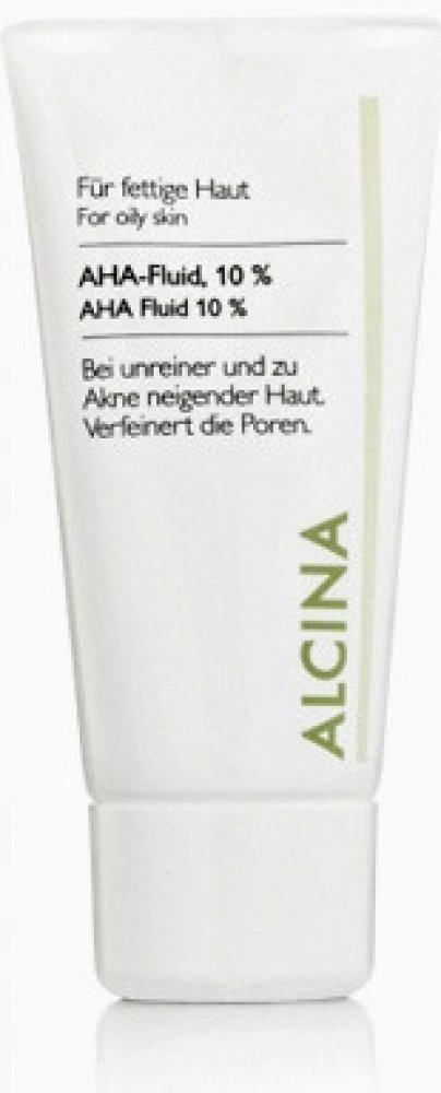Chemický peeling pro mastnou pleť **Alcina AHA Facial Fluid** je velmi účinným pomocníkem čištění pleti. Jeho aktivní složení obohacené a ovocné kyseliny čistí póry, redukuje pigmentové skvrny a pomáhá v boji proti akné.