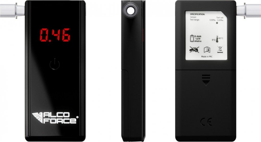 AlcoForce AlcoForce 0 - 3 ‰ AAA (mikrotužkové) 45 x 105 x 18 mm 74 g po 12 měsících -5 ° - +35 ° C elektrochemický