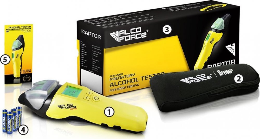 AlcoForce RAPTOR, to je přístroj pro velmi rychlé hromadné testování přítomnosti alkoholu ve vydechovaném vzduchu. Přístroj používá patentovanou technologii fuel-cell Fast Scan založenou na platinovém jádru senzoru. AT 7000 je profesionální alkohol tester, který se osvědčí i v náročných podmínkách práce policie nebo jiných ozbrojených sil. Samozřejmě se hodí i do větších podniků.