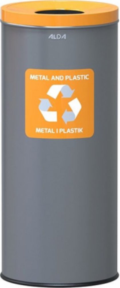 Kovové odpadkové koše na tříděný odpad z ocelového plechu. Víka ve žlutém, modrém, zeleném, hnědém a černém provedení s horním vhozem. Dno nádoby je opatřeno plastovým podstavcem, který chrání podlahu před poškozením. Součástí košů je piktogram v barvě víka. Možnost dokoupení plastové vnitřní nádoby.