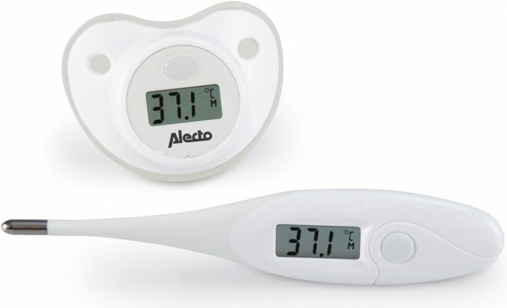 Teploměr ve tvaru dudlíku je ideální pro nejmenší. Jednoduše jej vložíte do úst svého dítěte a na obrazovce se zobrazí teplota Vašeho dítěte. V některých případech je však lepší spolehnout se na tradiční dětský teploměr s flexibilním hrotem.