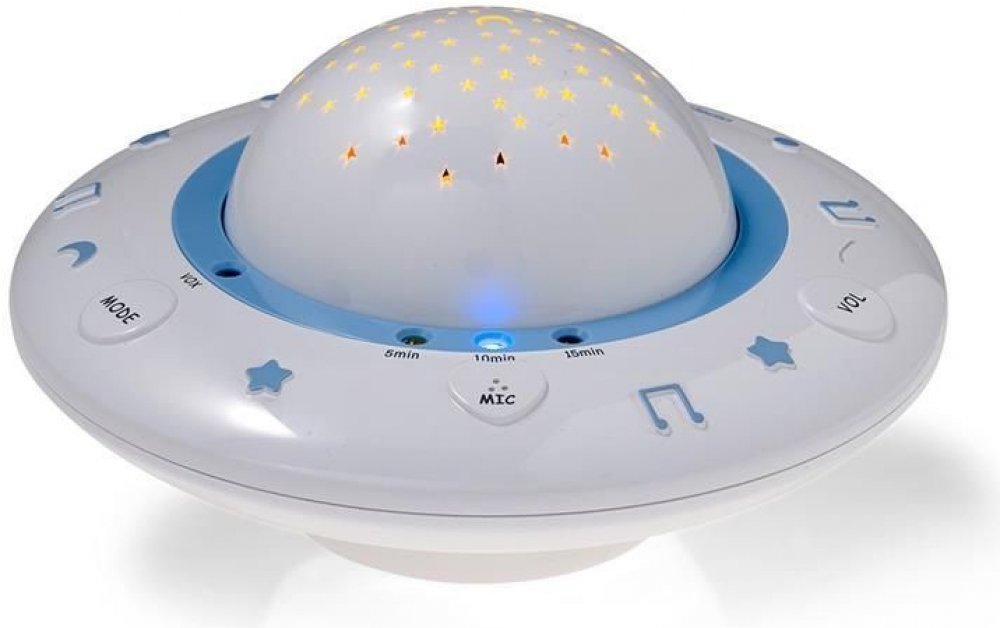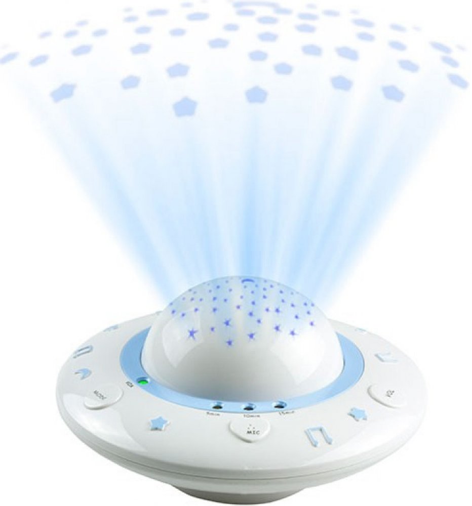 Stejně jako všechny malé děti, tak i vaše dítě je fascinováno obrazem a zvukem. Díky jemné hudbě a krásným obrazům mu poskytnete pohodlí a odpočinek. BC-125 je dětský projektor, který promítá krásné a barevné obrazy na stropě vašeho dětského pokoje, zatímco v místnosti se ozývají tiché melodie. Výhody dětského projektoru BC-125: • Bezdrátový a přenosný • Regulace hlasitosti melodií • Časovač doby přehrávání melodií a projekce (5,10 a 15 minut)
