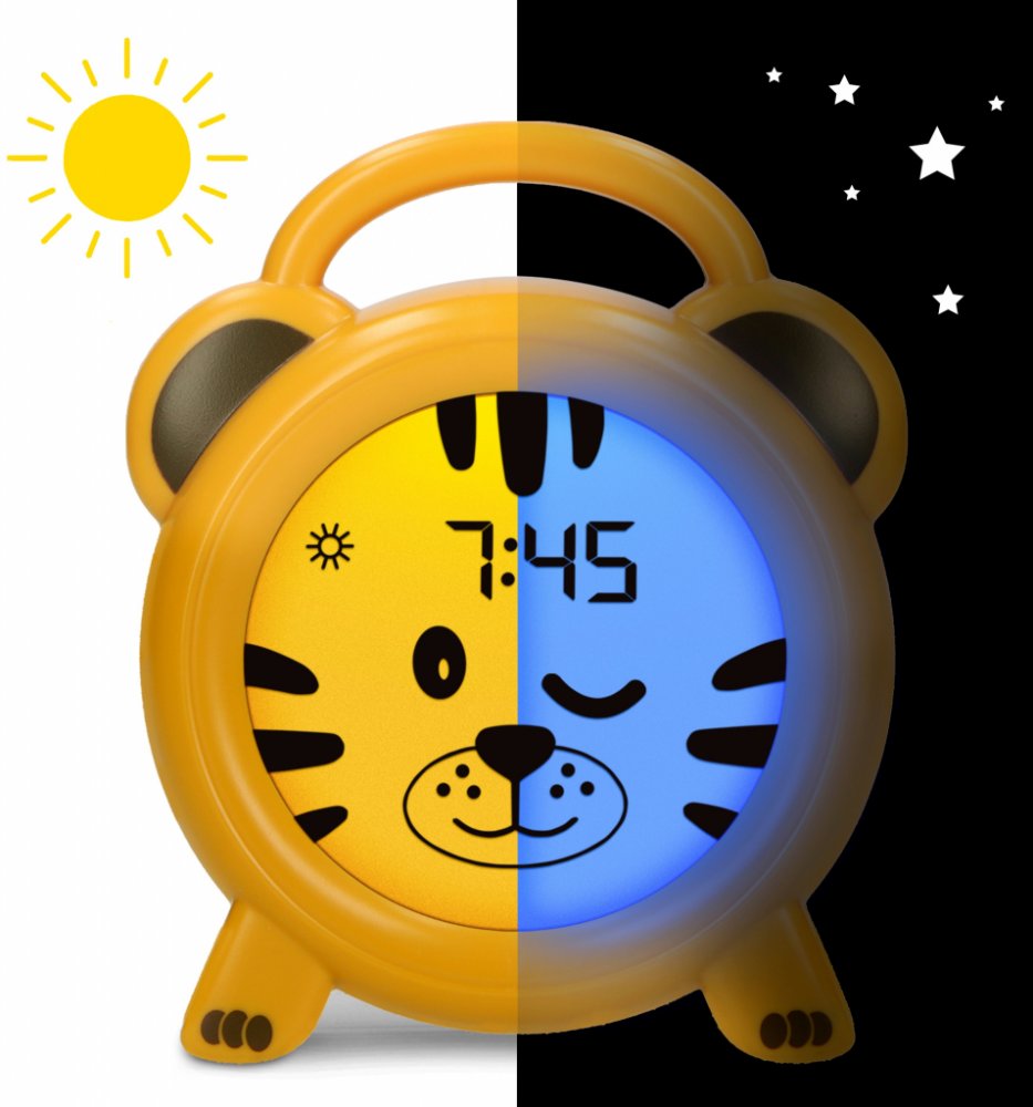 Spánkový trenér, noční světlo a budík, tygr Tento spánkový trenažér učí Vaše dítě ve dne i v noci. Někdy je pro děti těžké posoudit, kdy je den a kdy noc. Probudí se a myslí si, že je čas vstát, když by vlastně měli být ještě pár hodin v posteli. Tento problém se často zhoršuje, když se dny prodlužují a zkracují, nebo když začíná letní a zimní čas. BC100TIGER je spánkový trenažér, který pomáhá dět...