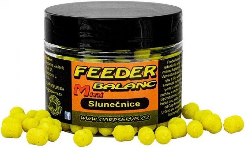 Feeder balanc je nadlehčená (neutrální - vyvážená) silně aromatická nástraha ve výrazných barvách. Je určená pro feeder nebo lehkou kaprařinu. Nutno nastražit pomocí vlasové metody nebo silikonových kroužků. Feeder balanc je jedinečným produktem pro rychlou feederovou techniku. Velmi účinně upoutá přítomné ryby a díky takřka nulové hmotnosti pod vodou dojde rychle k záběru. V případě potřeby je možné tuto nástrahu dipovat pomocí několika kapek feeder dipu nebo aroma speciálu od Carp Servis Václavík. Rozměr nástrahy: 6x8mm