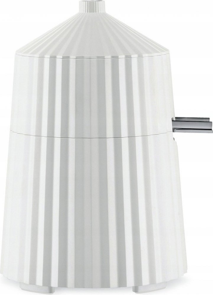 Elektrický lis na citrony od Alessi z kolekce Plissé je snadno použitelný lis na ovoce s úžasným designem. Díky funkci automatického start / stop pro odšťavňování stačí minimální síla, takže si můžete vychutnat čerstvou pomerančovou nebo citronovou šťávu během několika sekund. Aby zabránilo zamotání kabelů, lze integrovaný kabel omotat kolem spodní části zařízení. Je také protiskluzová, což zaručuje bezpečnou manipulaci. Alessi také usnadňuje čištění díky odnímatelnému lisu, který lze stejně jako víko mýt v myčce. Skříň je - charakteristická pro kolekci Plissé - zdobená svislými zářezy, což zajišťuje elegantní vzhled a upoutá pozornost na každé kuchyňské zástavbě. Odnímatelné víko dotváří čistý vzhled lisu na citrony a zabraňuje hromadění nečistot uvnitř přístroje. Sklenice a šálky standardních velikostí vejdou pod uzamykatelný výtok. Design vytvořil Michele De Lucchi. Lis na citrony skládá z pouzdra vyrobeného z termoplastu bez obsahu BPA a vnitřních prvků vyrobených z nerezové oceli. Rozměry: výška 27.5 cm, průměr 20 cm, kabel o délce 120 cm, výkon 85 Wattů.