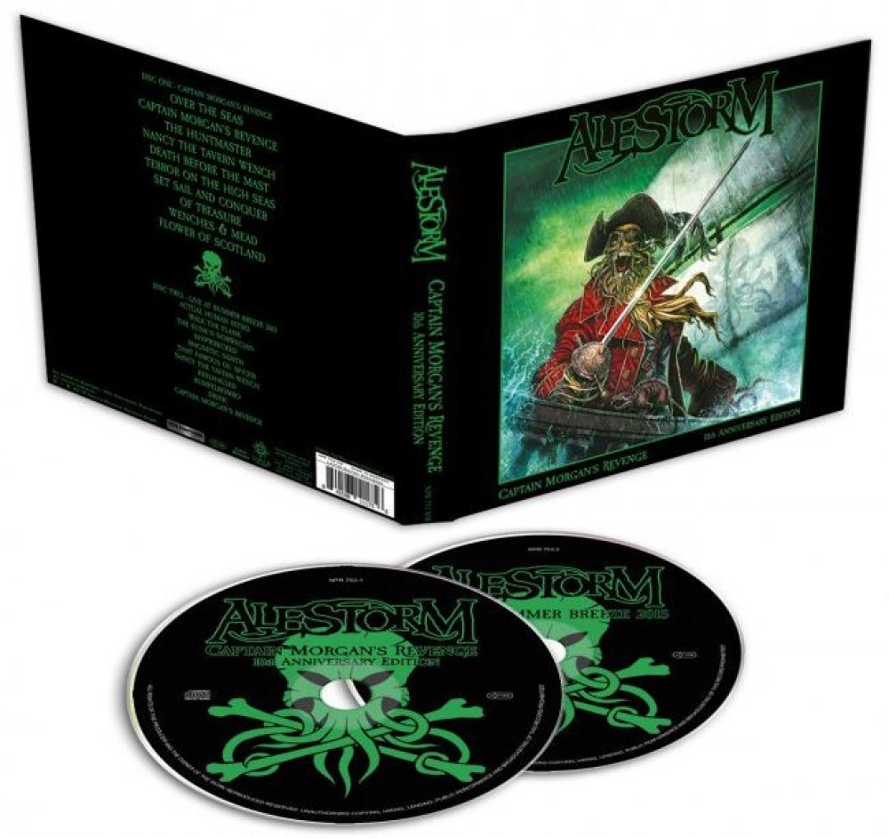 Alestorm TITLE Captain Morgan's Revenge - 10th Anniversary Edition At sunrise we'll all dance the hempen jig So raise up your pint of rum and take another swig The curse of Captain Morgan has led us to this fate So have no fear, and don't look back, the afterlife awaits Unforgettable words echoed by thousands of thirsty pirates for a whole decade now! Back in 2008, Alestorm were mere newcomers and beginners - and yet they created a modern metal classic and a completely new subgenre. Captain Morgan's Revenge marks the birth of Pirate Metal as we know it today and turned a couple of young Scotsmen into the hottest band of the moment. Ten years later their boozy debut gets it's well-deserved anniversary treatment Captain Morgan's Revenge - 10th Anniversary Edition has received a fresh remix and remastering by original producer Lasse Lammert at his LSD studios plus rejuvenated artwork. Th