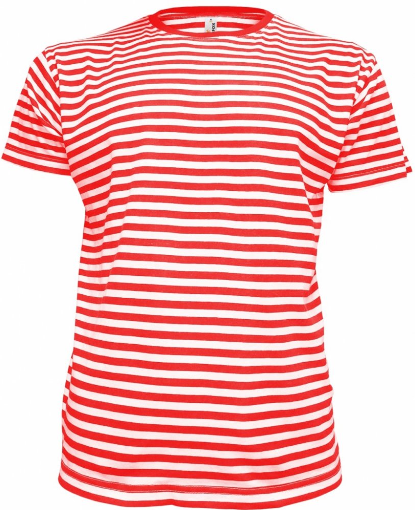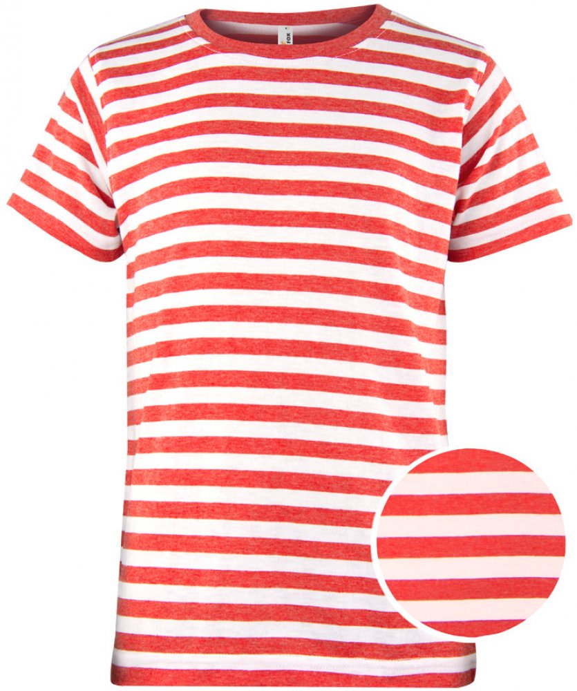 Veselé dětské pruhované tričko s krátkým rukávem a kulatým průkrčníkem z žebrovaného úpletu. Velmi kvalitní materiál a námořnický design jsou skvělou inspirací na léto. Materiál je vhodný pro potisk i výšivku.