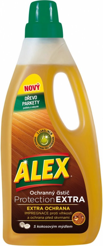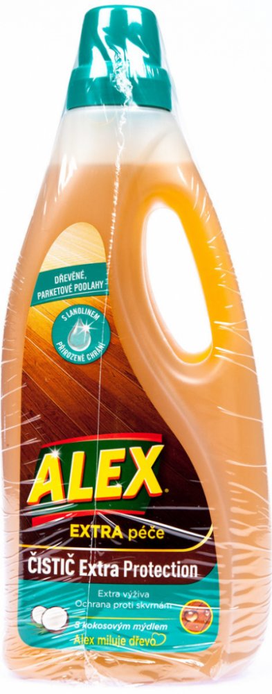Alex ochranný čistič Protection Extra pro všechny typy laminátových, vinylových a korkových podlah. Vhodný také na všechny typy moderního nábytku. Alex Protection Extra čistí a chrání podlahy i jednotlivé spáry před vlhkostí. Vytváří na povrchu ochranu proti skvrnám. Exkluzivní složení s lanolinem zabraňuje vysoušení způsobující popraskání a zanechává příjemnou vůni.