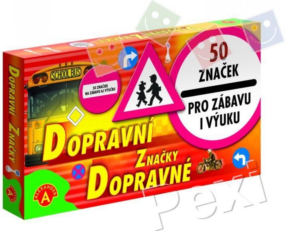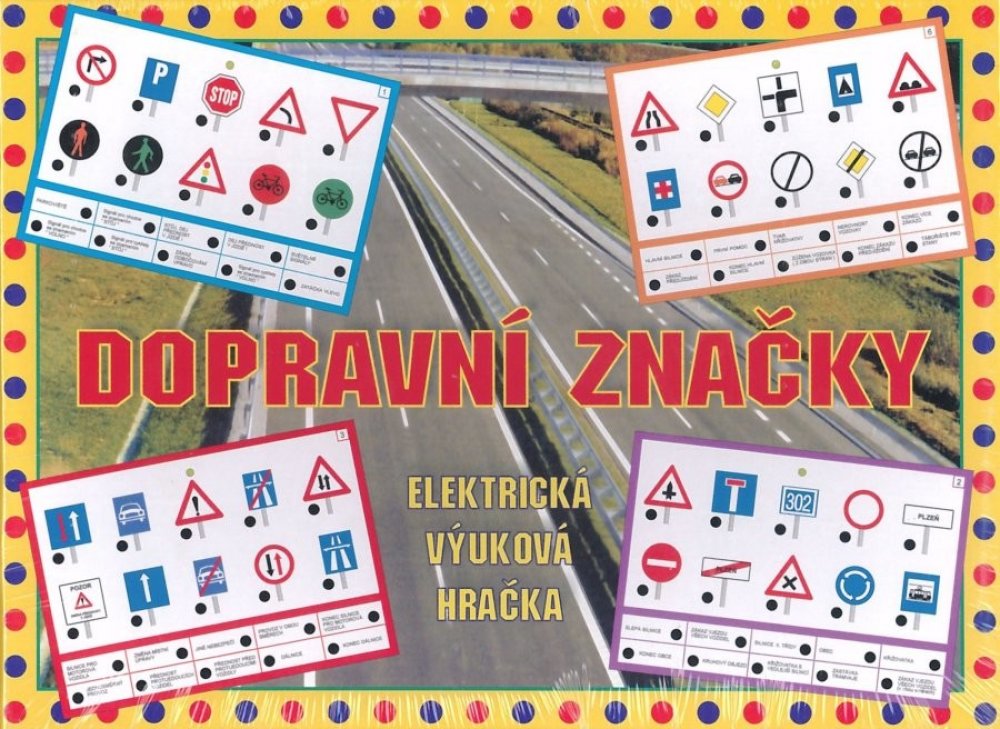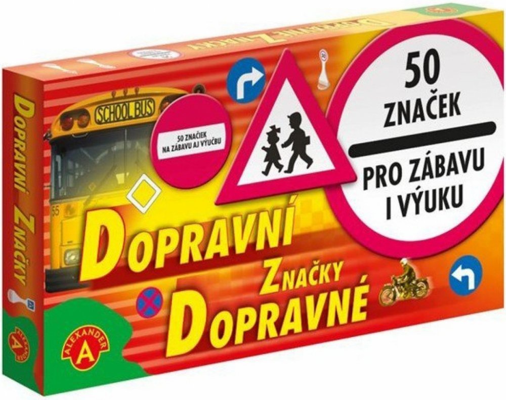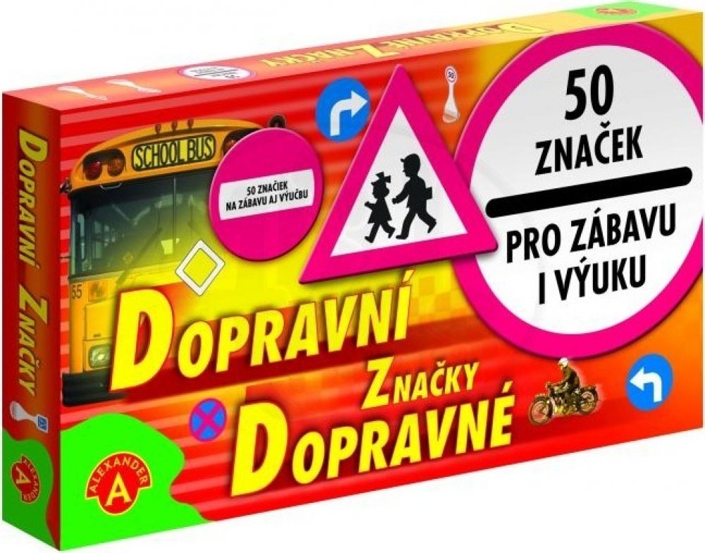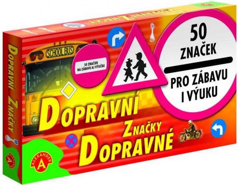 Děti se učí poznávat nejznámější dopravní značky. Balení obsahuje 50ks dopravních značek z pevného lesklého kartonu o výšce 5 cm a 50ks plastových stojánků a český a slovenský popis značek.