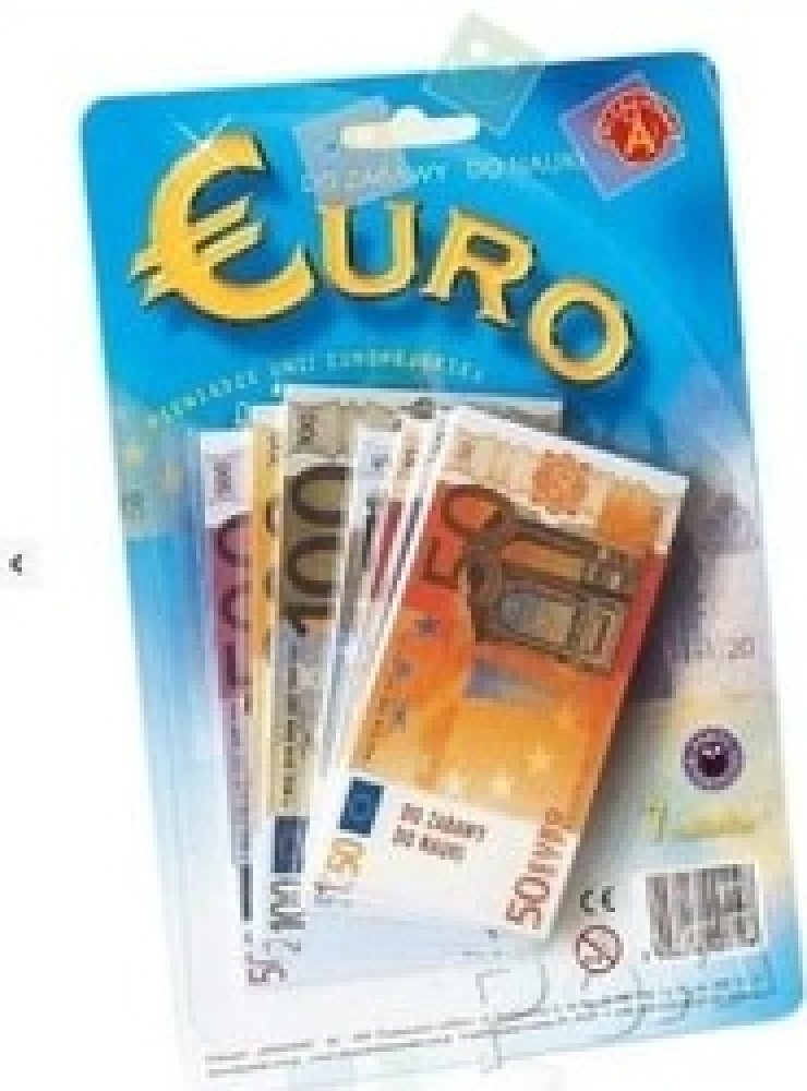 15450,-Euro v jednom balíčku! 119 velkých sytě barevných bankovek z EU. Vhodné k různým dětským hrám a jako naučná pomůcka. Seznam se s penězi, kterými se platí v evropskýh státech. Buď připraven až tato měna dorazí i do České republiky. Balení obsahuje: 119 bankovek (7 druhů)_x000D__x000D__x000D_