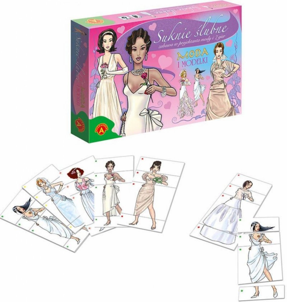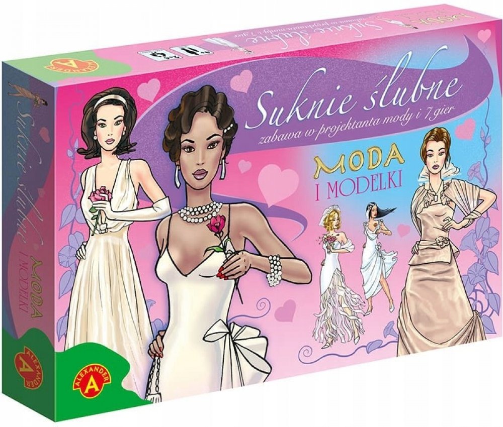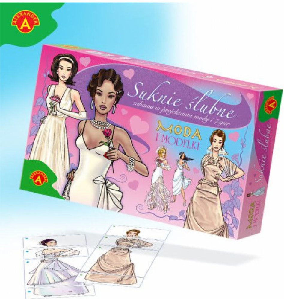 Atraktivní pokračování populární hry pro dívky, které si chtějí zdokonalit cit pro módu a vytříbit vkus. Společenská hra pro dívky se specíálními kartami. Skládání modelů a 7 zábavných her. Výborná zábava, v jejímž průběhu můžete vytvářet tisíce překrásných, překvapivých či zábavných svatebních šatů. Je to také 7 vzrušujících společenských her se sadou 96 speciálních karet, při kterých se pobaví 1-6 dívek. Hra je vhodná především pro dívky, ale nezřídka se ke hře nechají zlákat i chlapci. Hra je vhodná již od 4 let (skládání modelů šatů)a od 6 let jsou hry s pravidly. Firma Alexander vyrábí široký sortiment společenských her pro děti i dospělé a má více než 30-ti leté zkušenosti s jejich vývojem a výrobou. Hry Alexander rozvíjejí logocké myšlení, všeobecné znalosti a dovednosti. Jsou určeny pro děti a dospělé a pobaví celou rodinu. Celková nabídka her je velice široká - přes 300 produktů. Pro Vás jsme připravujeme ty nejatraktivnější hry a puzzle , další budou stále přibývat. Hlavním posláním firmy Alexander je, přinášet dětem i dospělým radost a vyplnit jim příjemně jejich volný čas!