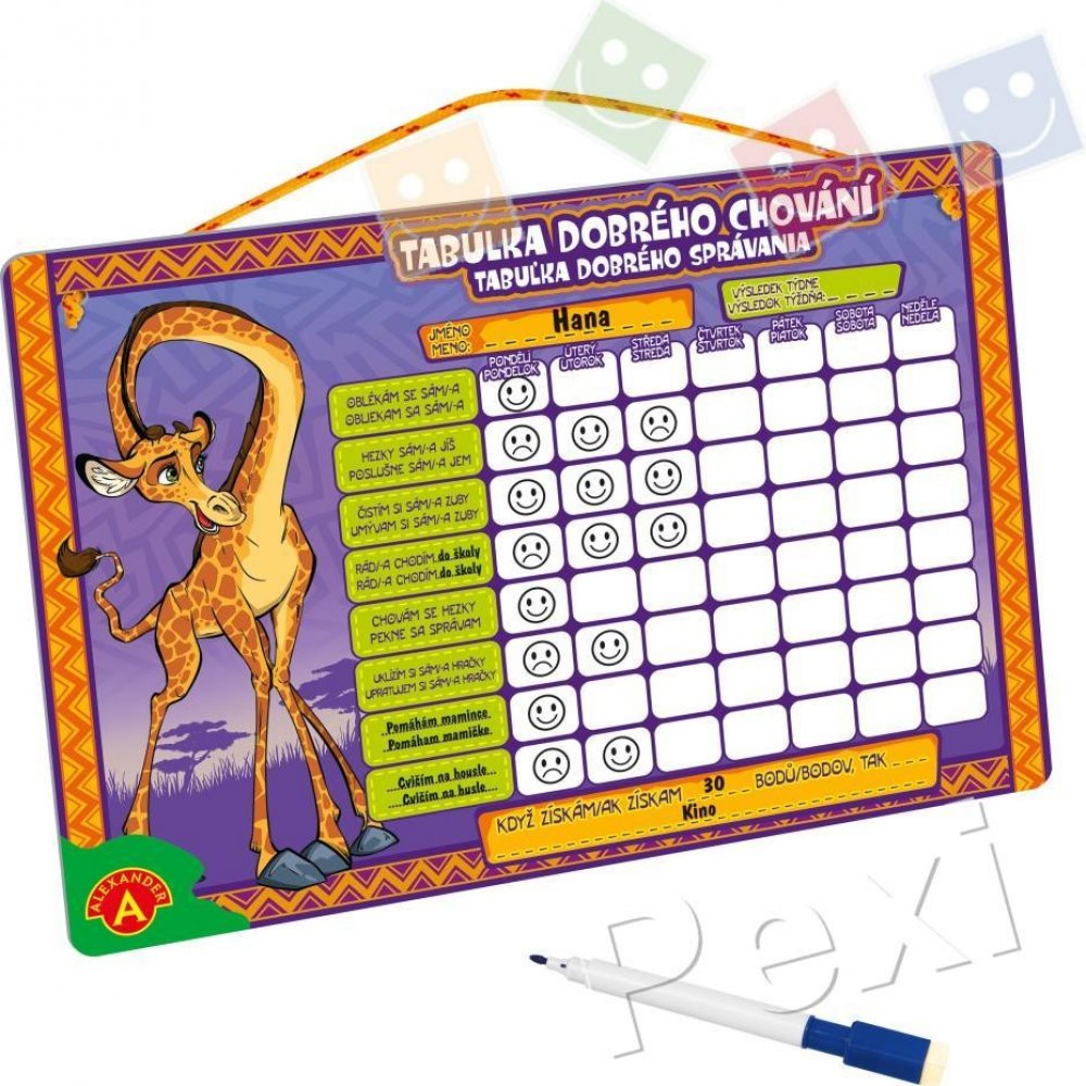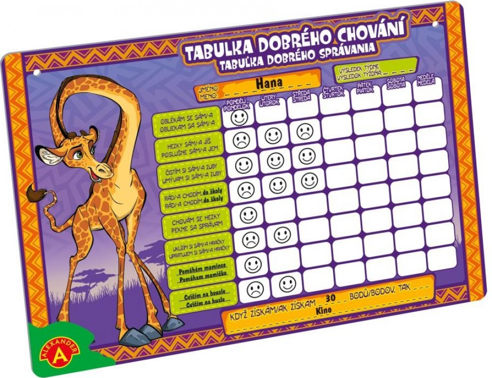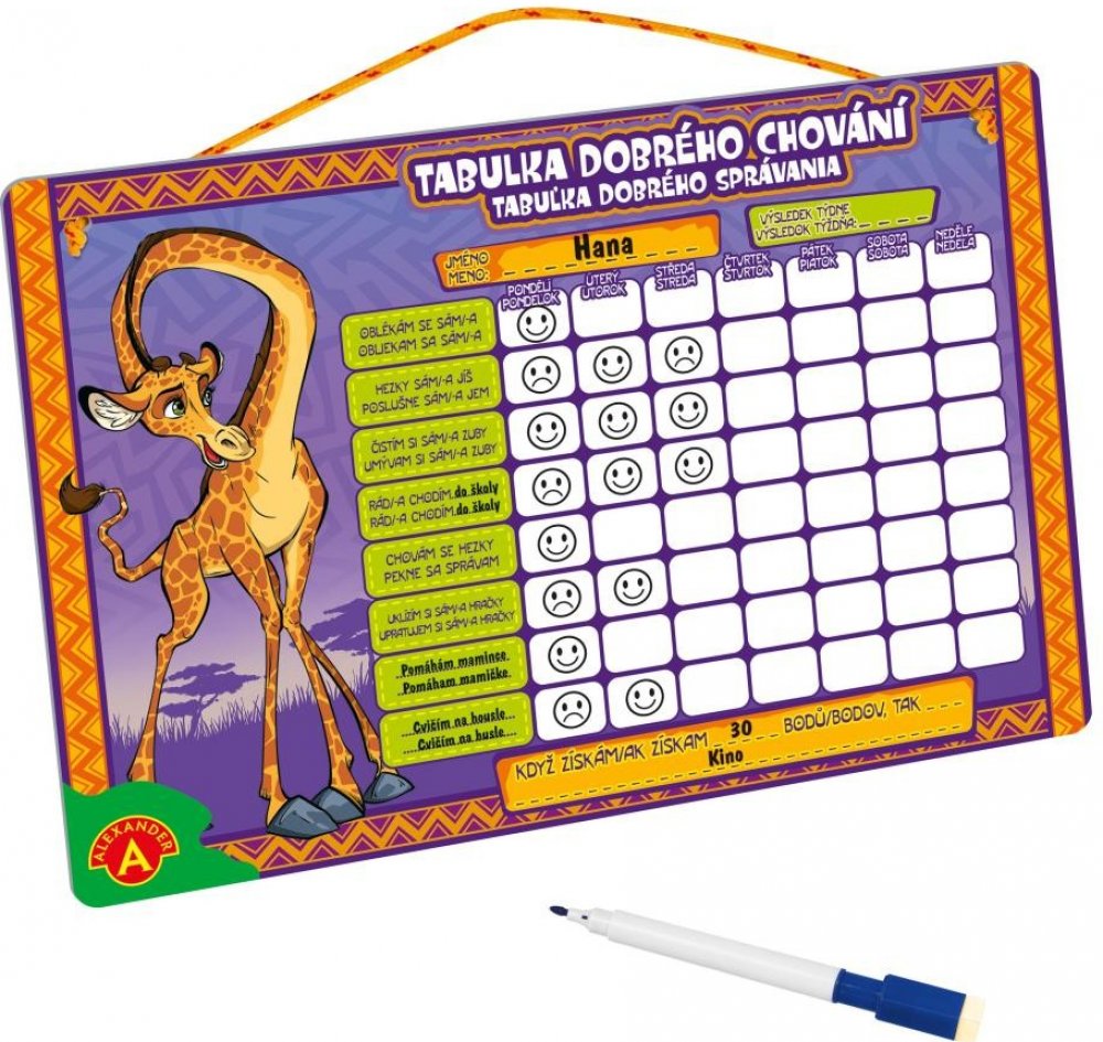 Pomocník do každé domácnosti pro zapomnětlivé či chaotické hlavičky. :) Dítko či rodič každý den zhodnotí, co a jak bylo z běžných rutinních aktivit provedeno. Odměna už záleží na vaší domluvě. Tabulka je mazací, popisky jsou v českém a slovenském jazyce.