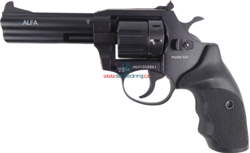 Revolver ALFA model 641 černý - guma ráže 6 mm ME Flobert představuje poctivou práci zbrojařů brněnské společnosti ALFAPROJ s.r.o. Tento model se střední délkou hlavně a černou povrchovou úpravou má černé plastové střenky se zdrsněným povrchem pro jistější a stabilnější držení revolveru. Flobertky společnosti ALFAPROJ s.r.o. mají všechny důležité díly vyrobeny z oceli. Revolvery mají dělený válec,...