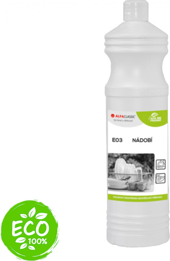Ekologický, vysoce účinný prostředek na ruční mytí nádobí, bez barvy a parfému. Velice dobře odstraňuje veškeré a zejména mastné nečistoty. Je šetrný k pokožce rukou. Je vhodný pro použití v zařízeních, které jsou napojené na septiky, domácí čističky nebo biologické čističky odpadních vod. Pro spotřebitelské i domácí použití. Respektujte životní prostředí tím, že budete dodržovat předepsané dávkování, při běžném znečištění dávkujte 3ml prostředku na 1l vody. Při větším znečištění možno velikost dávky upravit až na 15ml na 1l vody. V případě mytí nádobí nebo skla opláchněte umyté předměty pitnou vodou.