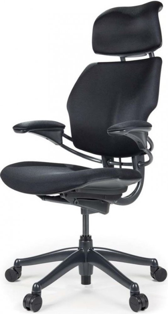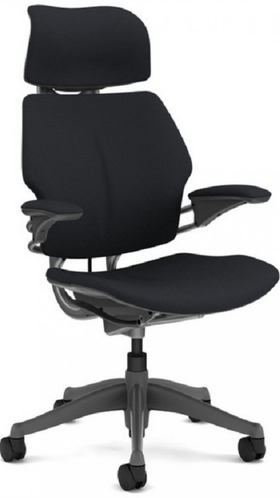 Unikátní model výrobce židlí HUMANSCALE , který se pyšní nejkvalitnějším sezením a skvělou mechanikou, která nemá konkurenci. Tato bezúdržbová židle může být použita prakticky v jakémkoliv interiéru. Židle Freedom je v této specifikaci: s opěrkou hlavy, rám a kříž v barvě Titan, standardní gelové područky čalouněné, potahová látka černá, gelový polštář sedáku, standardní kolečka. Židle dodána jako celek.