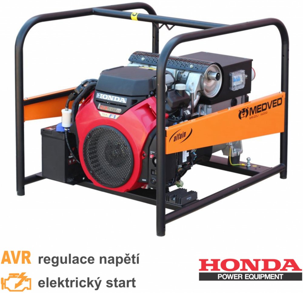 Třífázové elektrocentrály MEDVED GRIZZLI jsou poháněny benzínovým motorem a jsou primárně určeny k napájení třífázových strojů a zařízení, při sníženém provozním výkonu (kW) je lze využít i k napájení zařízení jednofázových. Slouží jako generátory elektrického proudu všude tam, kde není v dosahu přípojka do distribuční sítě - setkat se s nimi můžete ve stavebnictví, v zemědělství, na různých venkovních akcích, na koncertech nebo festivalech. Elektrocentrály GRIZZLI se používají i při různých havarijních, nouzových nebo krizových situacích.