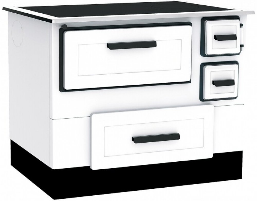 Velká trouba 58l, ve spodní části je umístěný šuplík na dostatečnou zásobu paliva, plášť je z kvalitního smaltovaného plechu s odolností až do 800°C.