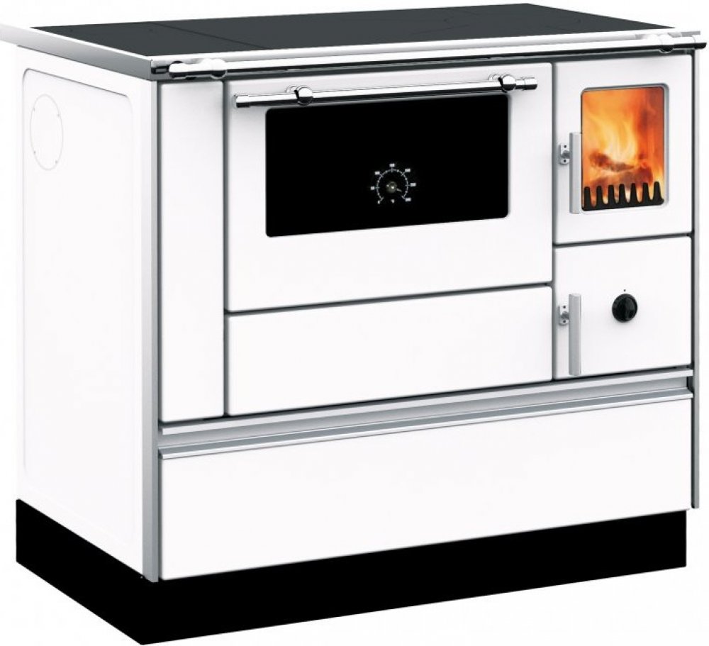 Alfa Plam bílé dřevo a dřevěné brikety pravé 125 kg 85 cm 90 cm 60 cm 8 kW 120 mm boční i horní s troubou