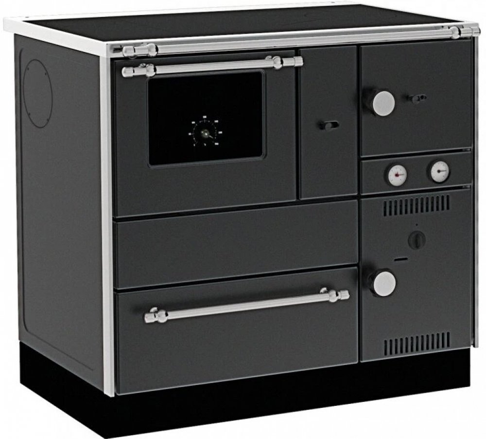 Sporák na tuhá paliva ALFA TERM 27*NR*ECO*A - L s výměníkem lze použít k vaření a pečení, výrobě teplé užitkové vody nebo k efektivnímu a ekologickému vytápění bytů, domů a kanceláří. Většinou se instaluje jako zdroj etážového vytápění, ale je možné jej použít i pro ústřední vytápění s napojením na vodní otopný systém (uzavřený či otevřený). Sledování tlaku a teploty vody v otopné soustavě umožňuje integrovaný manometr a teploměr. Součástí sporáku je i varná deska a prostorná pečicí trouba s dvojitým sklem opatřeným teploměrem. Vyjímatelný litinový rošt je možné použít podle potřeby v horní či dolní poloze. Horní umístění je vhodné pro vaření a pečení, přičemž dolní pozice umožní efektivnější ohřev vody. Sporák ALFA TERM 27 se nesmí používat bez vody a musí být vždy připojen k radiátorům s minimálním výkonem 14 kW. Klíčové vlastnosti sporáku na tuhá paliva ALFA TERM 27*NR*ECO*A - L, levý, antracitMultifunkční sporák ALFA TERM 27*NR*ECO*A - L s výměníkem je vhodný k vaření i...