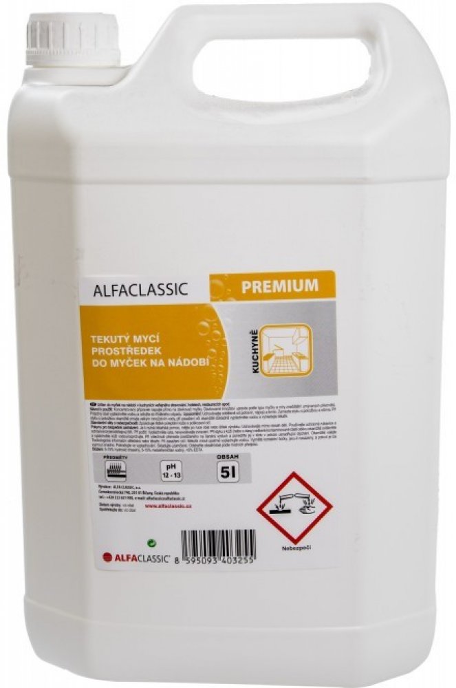 ALFA CLASSIC PREMIUM Určen do myček na nádobí v kuchyních veřejného stravování, hotelech, restauracích apod. Produktový list 261417_P1EA00_Tekutý prostředek do myček- MYCÍ.pdf Bezpečnostní list 261417_B1EA00_Myci prostredek do mycek-1.rev..pdf