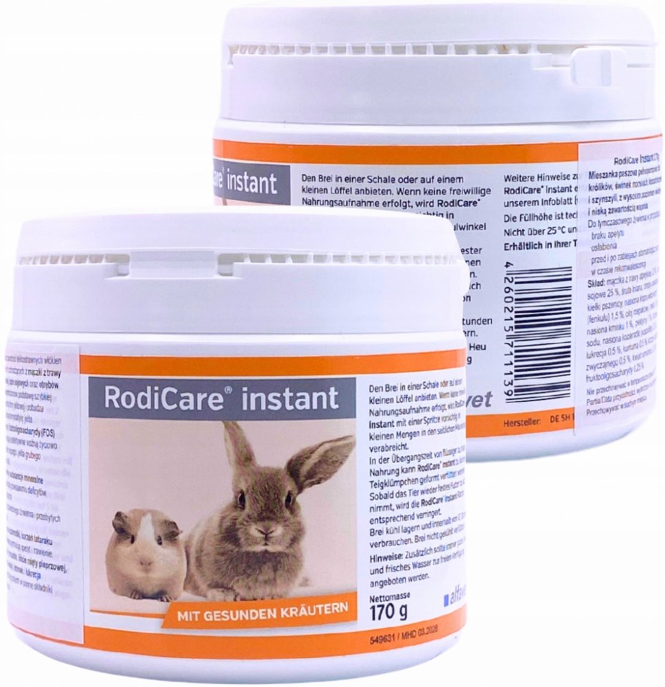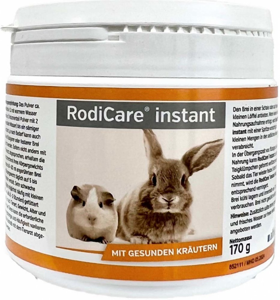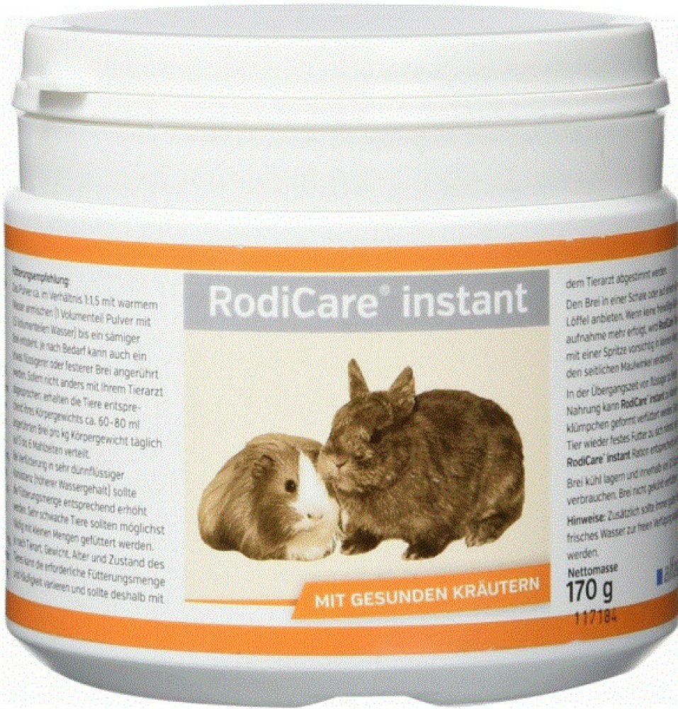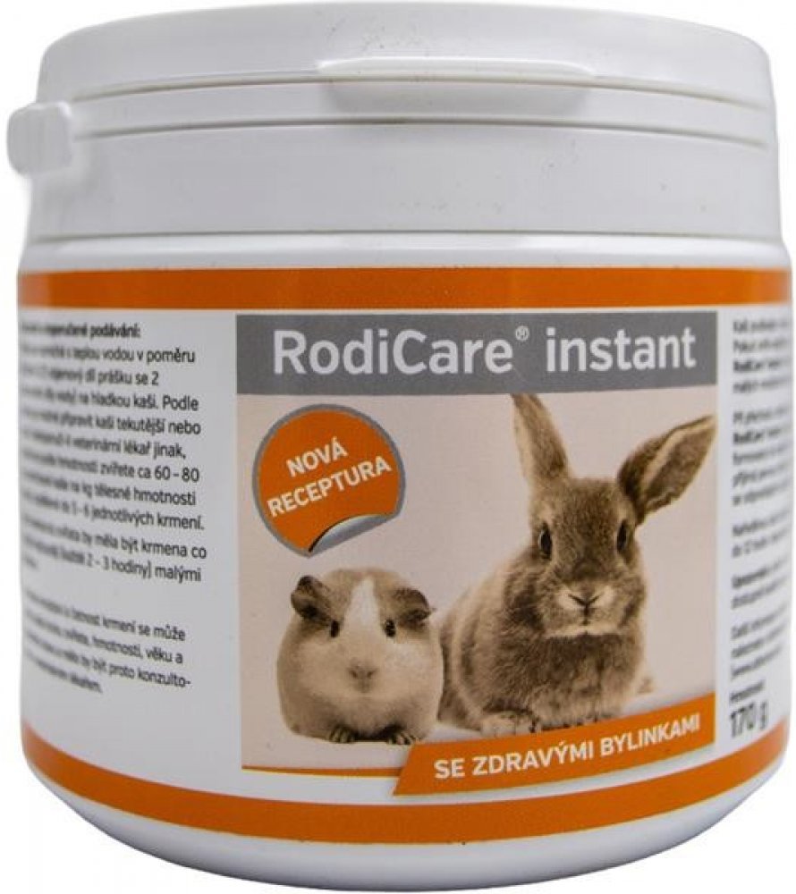 RodiCare Instant je hodnotné kompletní krmivo v práškové formě, určené pro morčata, králíky, činčily ale i pro rostlinami se živící plazy a ptáky, kteří přechodně nemohou přijímat pevnou stravu.