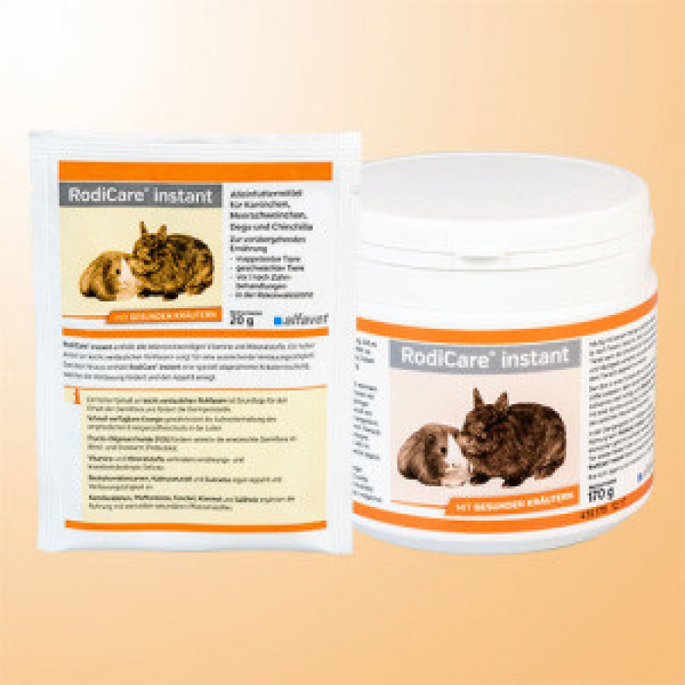 RodiCare Instant je obvzláště vhodné k přechodné výživě zvířat se zažívacími potížemi, se sníženou chutí k jídlu zaviněnou onemocněním, v rekonvalescenci nebo po ošetření zubů a dalších zákrocích.