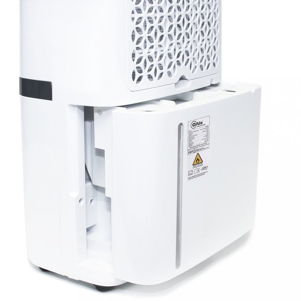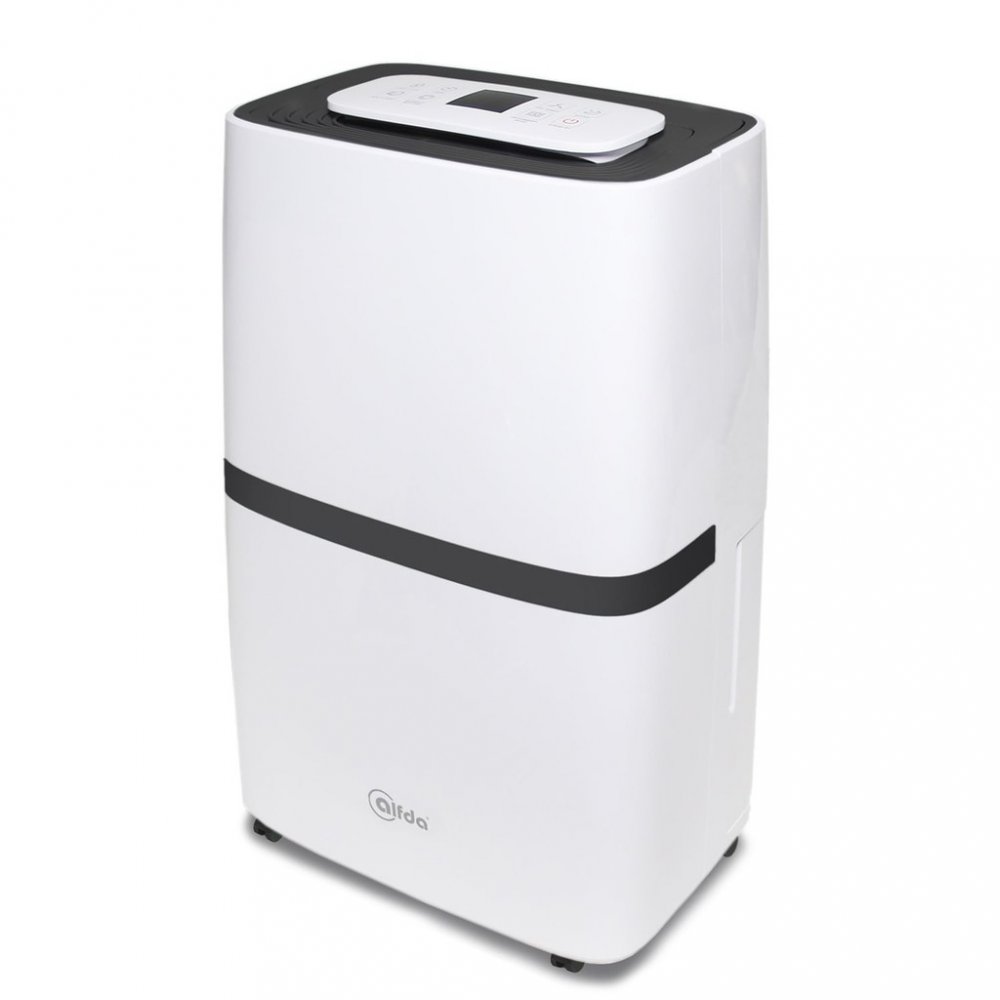 Kompresorový kondenzační odvlhčovač Alfa AEF2000 je účinný přístroj určený k provozu při teplotách 5–32 °C. Barevný indikátor vás z dálky informuje o aktuálním stavu vlhkosti vzduchu. Díky velké nádržce vydrží odvlhčovat mnoho hodin bez nutnosti vylévání nashromážděné vody. Tento odvlhčovač je ideální pro středně velké až velké místnosti, jako jsou obývací pokoje, menší obývací pokoje s kuchyní, haly, ložnice nebo pracovny. Pomůže vám snížit nadměrnou vlhkost vzduchu na ideální hodnotu mezi 40 a 60 procenty. Hlavní parametry výkon odvlhčování při 30 °C a 80% vlhkosti: 20 l / 24 h vzduchový výkon: 195 m3/h velikost nádržky: 5,5 l způsob odvlhčování: kondenzační Další funkce a vlastnosti odvlhčovače vzduchu Alfda AEF2000 Automatická regulace odvlhčování – pomocí hygrostatu přístroj udržuje požadovanou vlhkost, kterou lze nastavit v rozmezí 30 až 80 % v krocích po pěti procentech Filtrace vzduchu – omyvatelný předfiltr k zachycení hrubých nečistot jako vlasy, prach, hmyz nebo zvířecí srst pro ochranu přístroje. Pro lepší pročištění vzduchu můžete do odvlhčovače doplnit textilní prachový filtr, který zachytí částice od velikosti 10 mikrometrů, jako jsou prach nebo pyl. Kondenzační technologie vysoušení vzduchu – přístroj obsahuje kompresor a chladivo 6 režimů:1. Automatický – integrovaný hygrostat udržuje vlhkost s ohledem na hodnotu nastavenou uživatelem, lze upravovat rychlost ventilátoru 2. Trvalé odvlhčování – přístroj odvlhčuje dlouhodobě bez ohledu na aktuální vlhkost vzduchu při nízkých otáčkách ventilátoru3. Silné vysoušení – přístroj odvlhčuje bez ohledu na aktuální vlhkost vzduchu při vysokých otáčkách ventilátoru4. Sušení prádla – podporuje rychlé schnutí prádla v bytě bez zvyšování vlhkosti vzduchu, ventilátor běží na vysoké otáčky5. Čištění vzduchu – ventilátor prohání vzduch přes nasazený filtr, odvlhčování je vypnuto6. Spánkový režim – indikátory na ovládacím panelu se vypnou, aby svým světlem nerušily během noci Nastavení rychlosti ventilátoru – možnost manuální volby mezi nízkou a vysokou rychlostí otáček Světelná indikace vlhkosti – kontrolka zobrazuje aktuální vlhkost v místnosti pomocí barev: modrá = vlhkost 30–50 %, zelená = vlhkost mezi 50–70 %, červená = vlhkost 70–80 % Automatické vypnutí při plné nádržce – upozornění pomocí zvukového signálu a kontrolky na ovládacím panelu. Automatické odmrazování – přístroj si sám zabezpečí odmrazení v případě provozu v chladném prostředí Časovač – umožňuje nastavení doby provozu v rozmezí 1–24 hodin skokově po 1 hodině. Po uplynutí nastavené doby se odvlhčovač vypne. Aktivace časovače je signalizována na displeji. Dětský zámek – ochrana před nežádoucím přenastavením malými dětmi Odvod vody (kondenzátu) – zkondenzovanou vodu lze pomocí hadice odvádět přímo do odpadu (hadice je součástí balení) nebo nechat stékat do sběrné nádržky v přístroji. Provoz s externím časovým spínačem – zapínání a vypínání zařízení můžete také ovládat pomocí zásuvky s časovým spínačem nebo chytré WiFi zásuvky Pohodlná manipulace – madlo a kolečka pro snadnou změnu umístění přístroje Přehledný dotykový ovládací panel s LED displejem Tichý a úsporný provoz Jak správně používat odvlhčovač vzduchu Odvlhčovač umístěte na rovný povrch, nejlépe v uzavřené místnosti v dostatečné vzdálenosti od stěn a nábytku, aby vzduch mohl co nejlépe proudit. Kontrolujte si průběžně aktuální vlhkost vzduchu pomocí vestavěného hygrostatu, vlhkoměru nebo meteostanice. Obsah balení produktu odvlhčovač, předfiltr, odtoková hadice na odvod kondenzátu