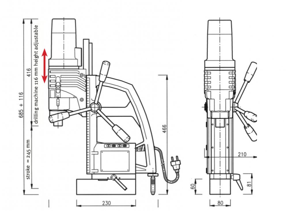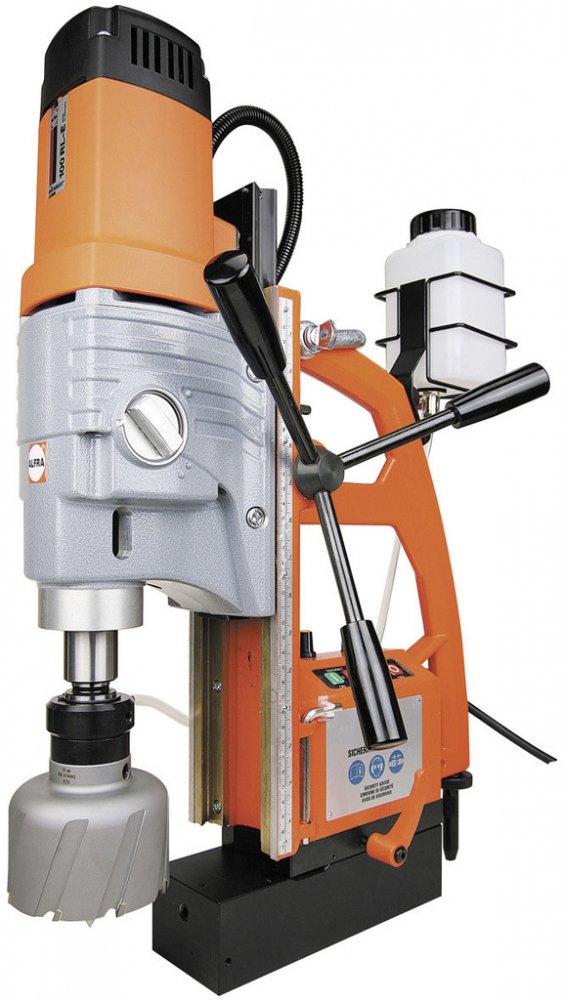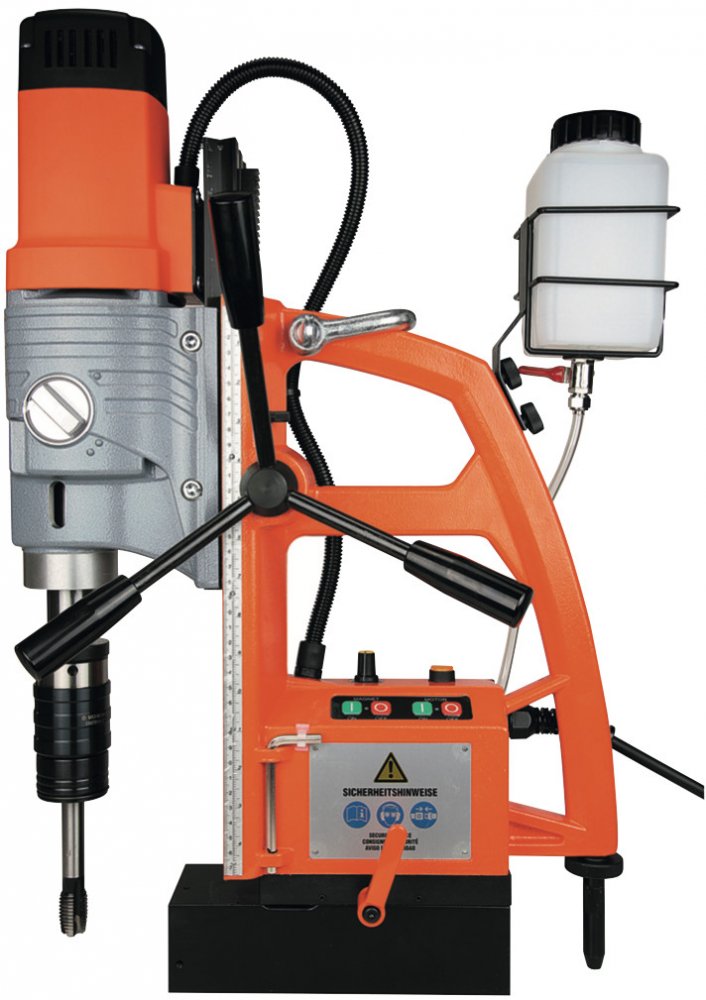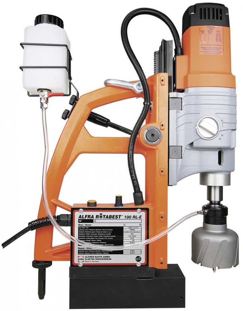 Magnetická vrtačka Rotabest 100 RL-E Velká magnetická vrtačka se zdvihem 384 mm. Je vybavena plovoucím magnetem pro přesné centrování místa vrtání. Mezi hlavní výhody patří elektronická regulace otáček a pravo-levý chod vřetene, pro aplikace řezání závitů. vrtání až do průměru 100 mmtepelná ochrana přetěžovací spojka mechanická čtyřrychlostní převodovka pravo-levý chod stroje a elektronická regulace univerzální upínání MK 3 široké spektrum aplikací Součást balení: magnetická vrtačka Rotabest 100 RL-E transportní kufr (opatřený kolečky) bezpečnostní zajišťovací pás automatický chladicí systém nářadí pro obsluhu návod na obsluhu Doporučujeme dokoupit rychloupínací pozdro pro korunkové vrtáky Ø 12 - 60 mm a Upínací pouzdro pro korunkové vrtáky Ø 50 - 100 mm s upínáním na pero, AL 3 (viz související)
