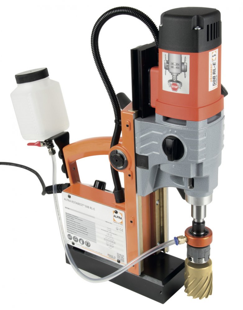 Magnetická vrtačka Rotabest 50 B RL-E - Maximální průměr vrtání 50 mm - Stroj vybaven pravo-levým chodem Rotabest 50 B RL-E je novou generací jedné z nejprodávanějších magnetických vrtaček na našem trhu - Rotabest 40 RL-E. Stroj má stále ještě relativně nízkou váhu a malé rozměry, ale na druhou stranu disponuje již například upínáním na morsekužel MK 2 a mechanickou dvourychlostní převodovkou. To značně rozlišuje možnosti využití stroje. Hlavní výhodou je pak elektronická regulace otáček a pravo-levý chod vřetene. Díky tomu je stroj připraven pro aplikace řezání závitů i bez použití drahé reverzní závitořezné hlavy.Pravo-levý chod stroje a elektronická regulace.Univerzální upínání MK2.Kompaktní rozměry a příznivá váha.