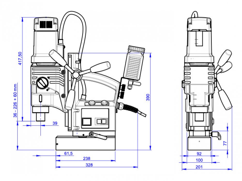 18629.NKO - ALFRA - Magnetická vrtačka ROTABEST 80 B RL-E ALFRA 18629.NKO - Obrábění | Kovoobráběcí stroje | Vrtačky | Magnetické - Magnetická vrtačka ROTABEST 80 B RL-E ALFRA 18629.NKO Rotabest 80 B RL-E je novou generací jedné z nejprodávanějších magnetických vrtaček na našem trhu - Rotabest 60 RL-E Rotabest 80 B RL-E patří do skupiny středně velkých magnetických vrtaček Jedná se o jeden z nejlépe vybavených modelů Pyšní se například upínáním na morse kužel MK 3, mechanickou čtyř rychlostní převodovkou, přetěžovací spojkou, tepelnou ochranou a v neposlední řadě i praktickým plovoucím magnetem, který dovoluje přesné centrování místa vrtání Hlavní výhodou je pak elektronická regulace otáček a pravo-levý chod vřetene Díky tomu je troj připraven pro aplikace řezání závitů i bez použití drahé reverzní závitořezné hlavy Pravo-levý chod stroje a elektronická regulace Univerzální upínání MK3 Jeden z nejlépe vybavených strojů na trhu nabízí široké spektrum aplikací Rozsah dodávky Magnetická vrtačka Rotabest 80 B RL-E Transportní kufr Bezpečnostní zajišťovací pás Automatický chladicí systém Tříčelisťové rychlosklíčidlo morse kužel MK 3 pro spirálové vrtáky s válcovou stopkou Nářadí pro obsluhu Návod na obsluhu Sada 6-ti korunkových vrtáků, max. hloubka vrtání 30 mm, průměr 12, 14, 16, 18, 20, 22 mm + centrovací špička