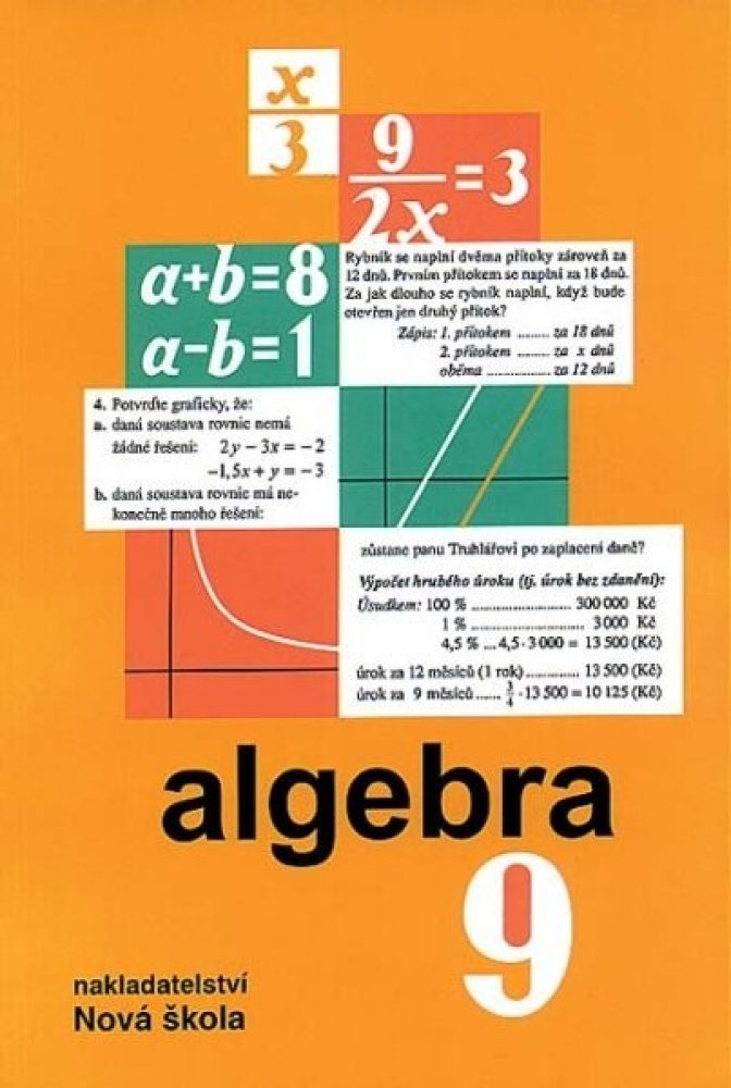 Učebnice je pojata podle vzděl. programu ZÁKLADNÍ ŠKOLA se zřetelem na inovující programy výuky matematiky. Obsahuje kapitoly: Lomený výraz, Řešení lineárních rovnic s neznámou ve jmenovateli, Soustavy lineárních rovnic se dvěma neznámými, Funkce, Základy finanční matematiky. Zahrnuje motivační prvky, příklady z praxe, činnosti. Důraz se klade na rozvoj logického myšlení a na propojení s látkou př...
