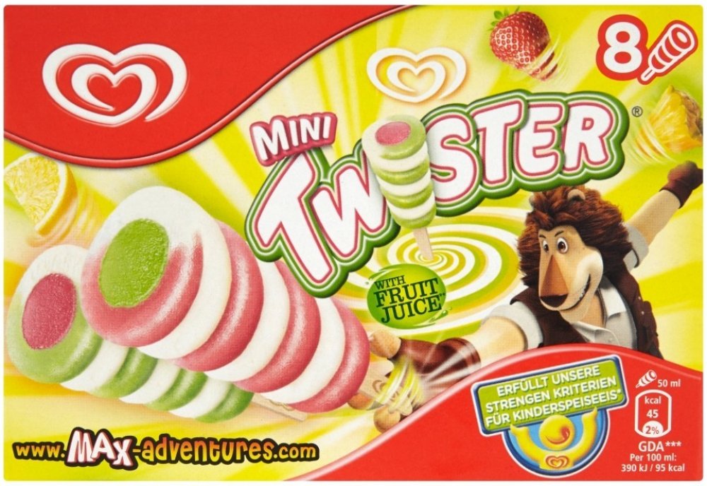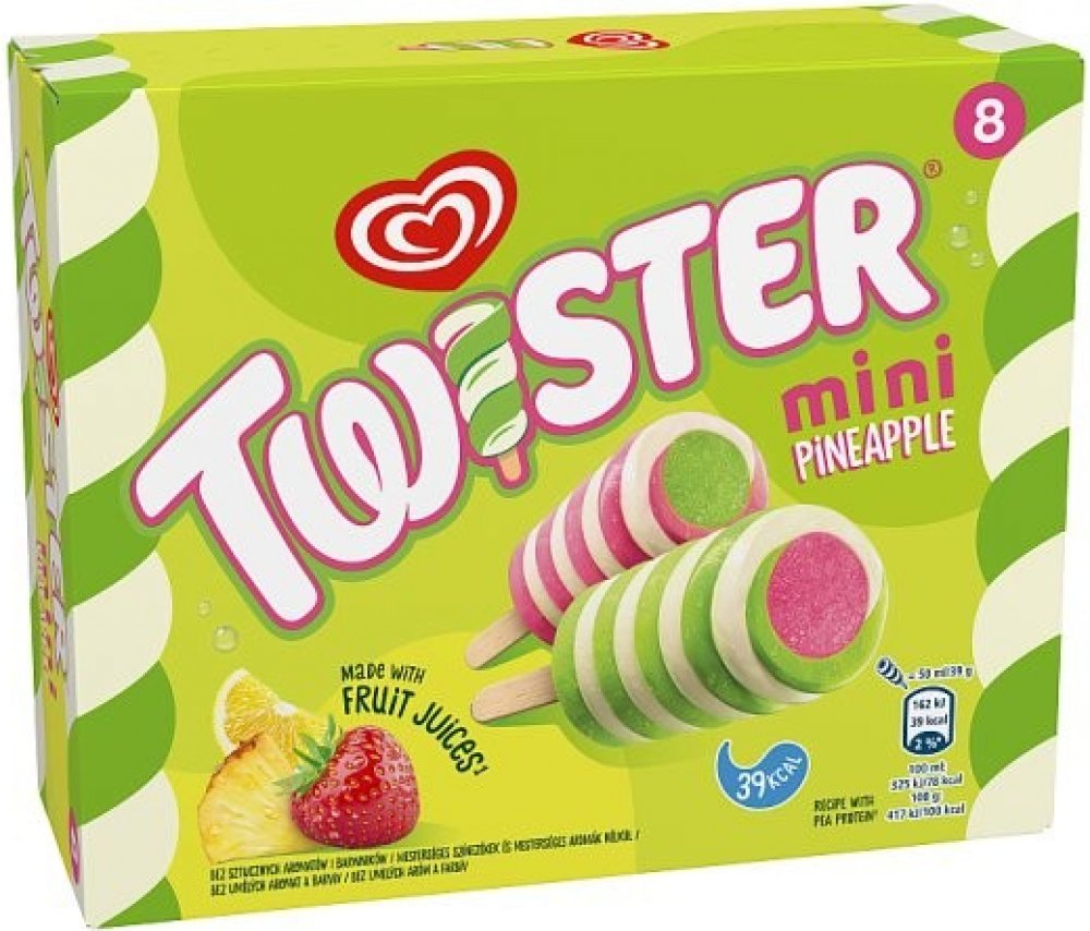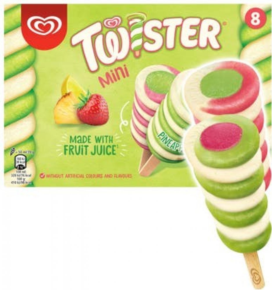 Cena se může v jednotlivých regionech lišit. -- Skvělý mix dvou různých příchutí oblíbeného dětského nanuku Twister. Máte raději ananas? Či jahodu? V tomto rodinném balení najdete vše! Naše zmrzliny jsou navrženy tak, aby nejen chutnaly a byly zábavné, ale zároveň splňovaly naše výživová kritéria zmrzlin vhodných i pro děti. Kombinace jahodové, citronové a ananasové chuti. Balení obsahuje 8 ks zmr...