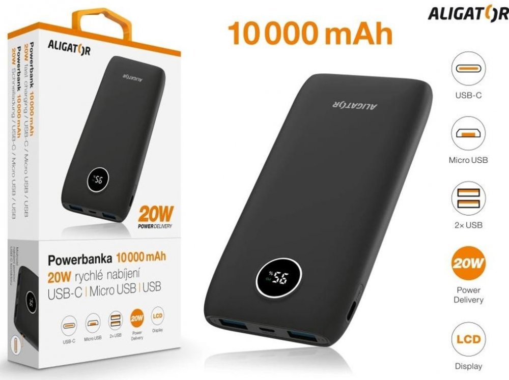 Aligator PLUS 10000 mAh Li-Pol 225 g 20 W 3 černé