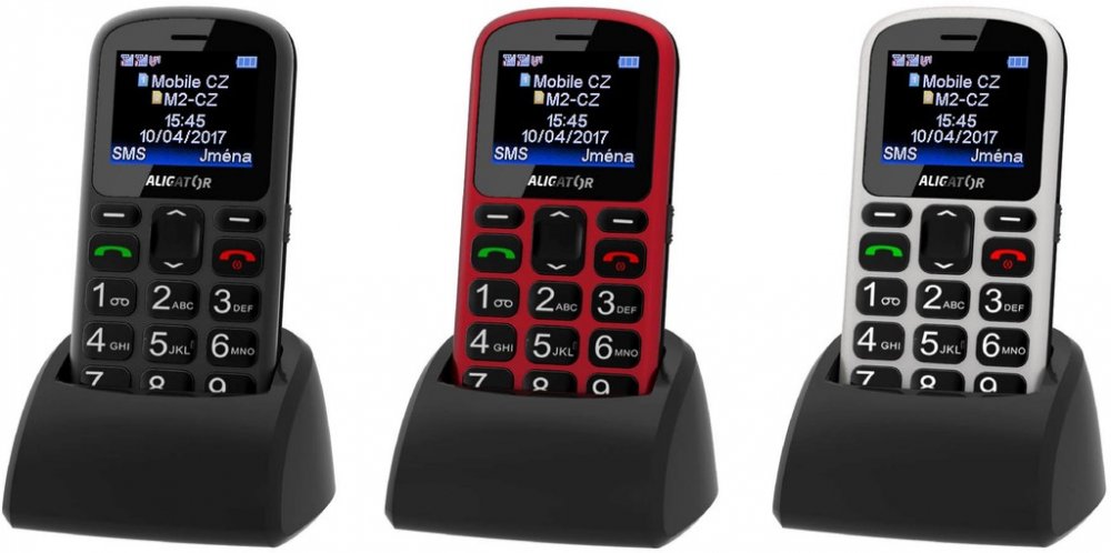 Klasický telefon pro seniory s SOS tlačítkem, možností obrázkového tel. seznamu a funkcí určení polohy SOS locator,