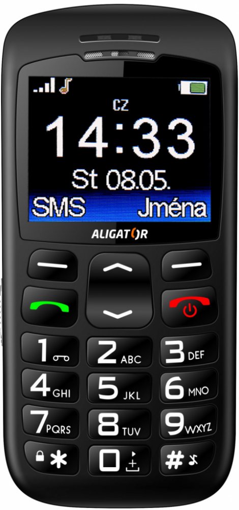 A670 je k dispozici ve dvou barvách: černo-stříbrná a červeno-černá. Používejte svůj telefon snadno a jednoduše. Přejeme vám bezstarostné používání mobilního telefonu Aligator A670!