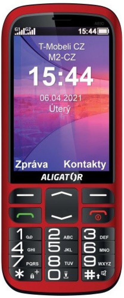 385 g tlačítkové Aligator operační systém výrobce 2023 Aligator Senior bez nadstavby červené 152 mm 64 mm 14.5 mm 2000 mAh 168 hodin 360 min 2000 mAh 2.1 microSIM micro USB 3,5mm Jack Dual SIM 1 480 x 320 3.5 " TFT 3:2 165 PPI 2 Mpx 1 objektiv
