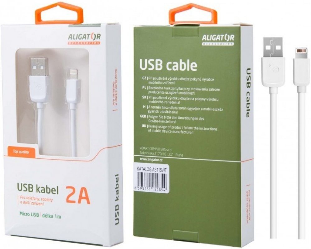 Aligator AS115WT MicroUSB 2A, 1m, bílý