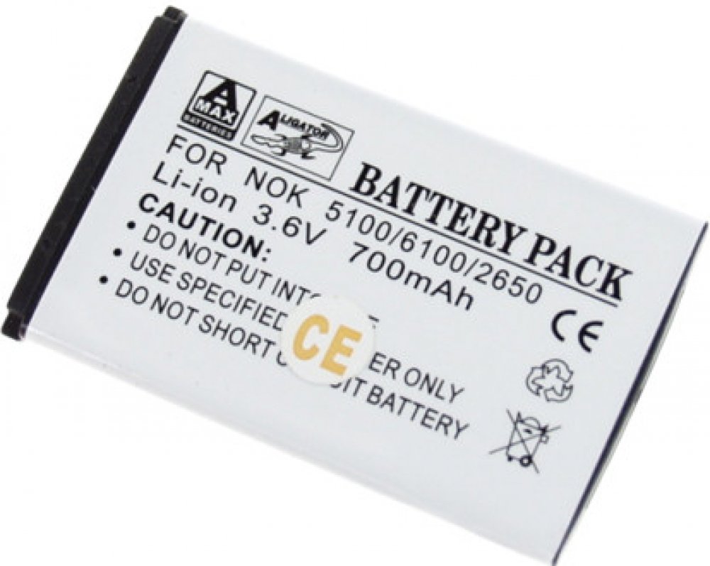 Jde to i bez originální baterie Kvalitní baterie značky ALIGATOR A-MAX, typu Li-ION, sloužící jako náhrada za originální baterii. Pečlivá kontrola při výrobě zaručuje skvělý výkon a dlouhou životnost. Technologie Li-Ion Obsažené akumulátorové články s technologií Li-Ion patří mezi nejmodernější typy akumulátorů a kromě vysoké kapacity a dobré životnosti zaručují vysoký výkon. Paměťový efekt Mezi další výborné vlastnosti patří též skutečnost, že v podstatě netrpí tzv. „paměťovým efektem", který se u starších typů baterií negativně projevuje na kapacitě baterie při používání. Další technické parametry: Kapacita: 850 mAh. Baterie pro: 5100 / 6100 / 6300 / 7200 / 2650.